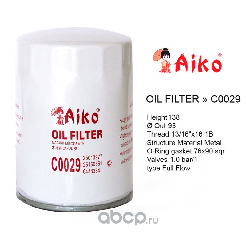 | AIKO | C0029 | Фильтр масляный GM / CHEVROLET / OPEL | ||