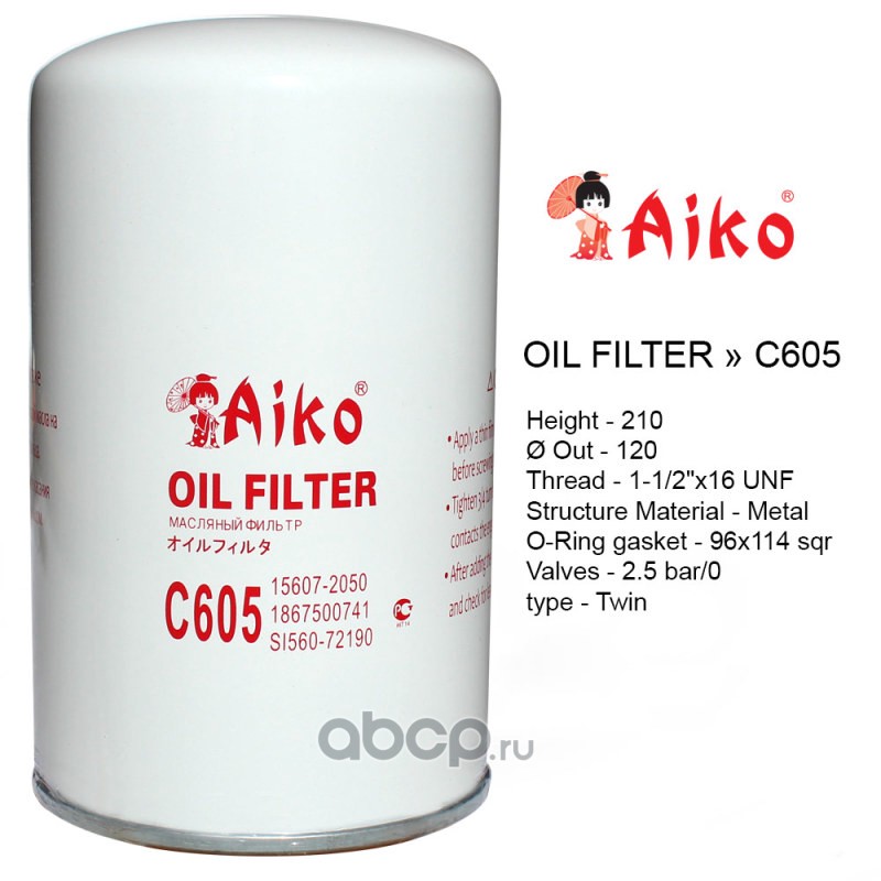 | AIKO | C605 | Фильтр масляный HINO Ranger, Truck, NISSAN Condor, TOYOTA Coaster (2000 - ) | ||