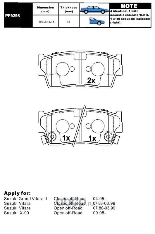 | AIKO | PF9298 | Колодки SUZUKI Escudo, Vitara (1988-1998) передние | ||