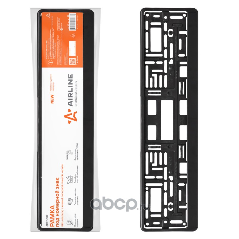 Рамка под номерной знак (без надписи) с нижней запорной планкой, черная