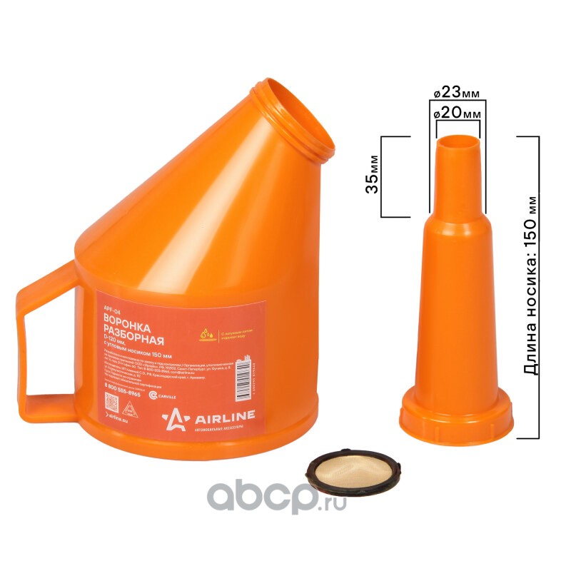 Воронка разборная D-120мм с угловым носиком, L=150мм, латунная сетка