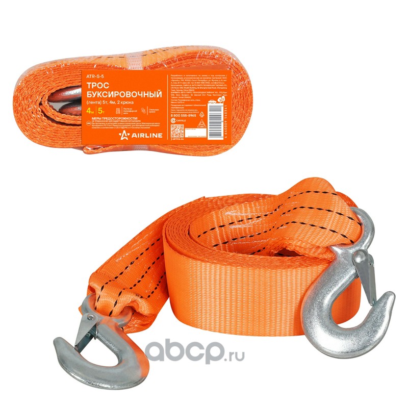 Трос буксировочный (лента) 5т, 4м, 2 крюка