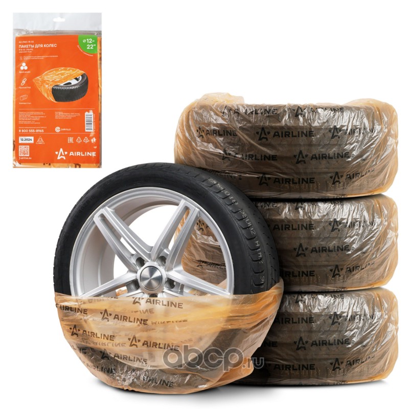Пакеты для колес R12-22, 4 шт в пакете, 115х115 см, 18 мкм, оранж.
