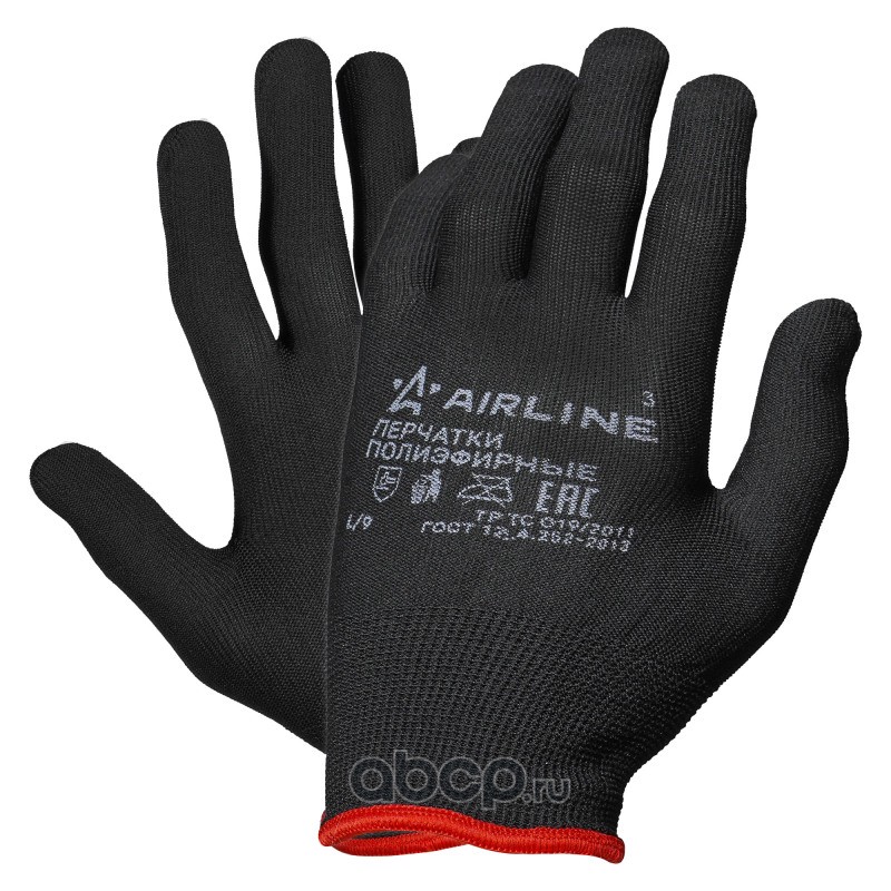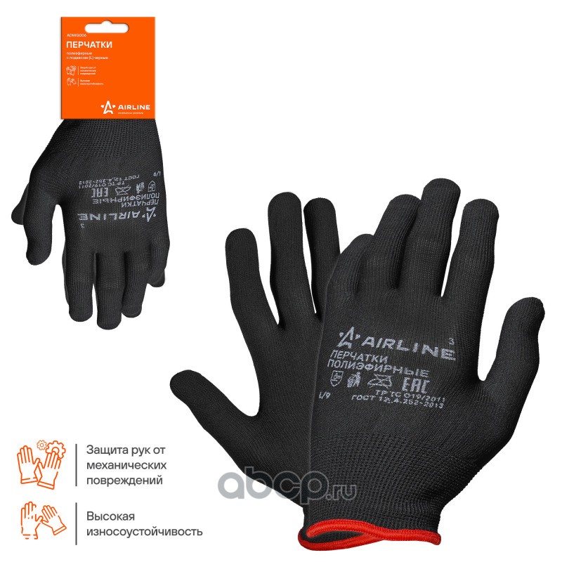 Перчатки полиэфирные (L) черные, с подвесом