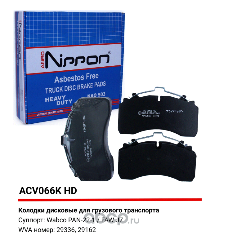 | ALLIED NIPPON | ACV066KHD | Колодки дисковые тормозные | ||
