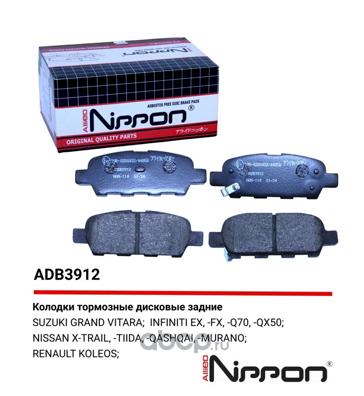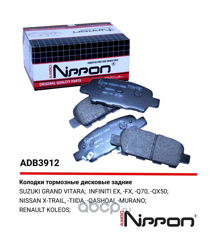 | ALLIED NIPPON | ADB3912 | Колодки тормозные дисковые | ||