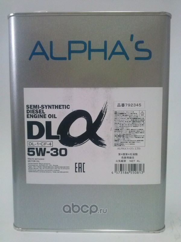 | ALPHA'S | 792345 | Масло моторное полусинтетика ALPHA'S DL-ALPHA DL1/CF4 5W-30 4 л. | ||