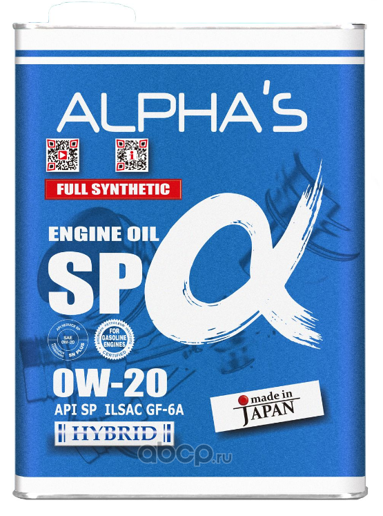 | ALPHA'S | 809444 | Масло моторное синтетика ALPHA'S SP-ALPHA SP 0W-20 4 л. | ||