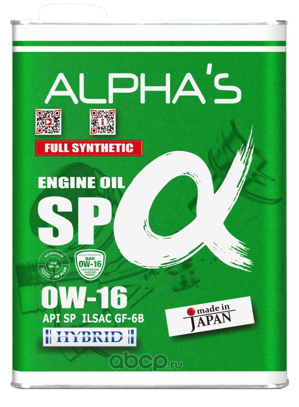 | ALPHA'S | 810044 | Масло моторное синтетика ALPHA'S SP-ALPHA SP 0W-16 4 л. | ||