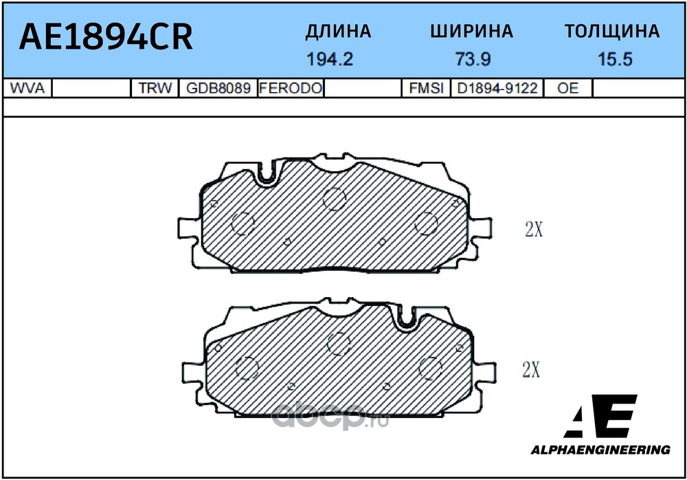 | ALPHA ENGINEERING | AE1894CR | CERAMIC Колодки ( С УСТАНОВОЧ. К-ТОМ ) | ||