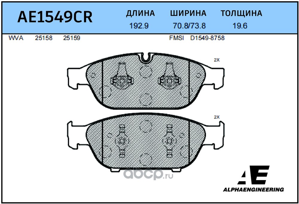 | ALPHA ENGINEERING | AE1549CR | CERAMIC Колодки ( С УСТАНОВОЧ. К-ТОМ ) | ||