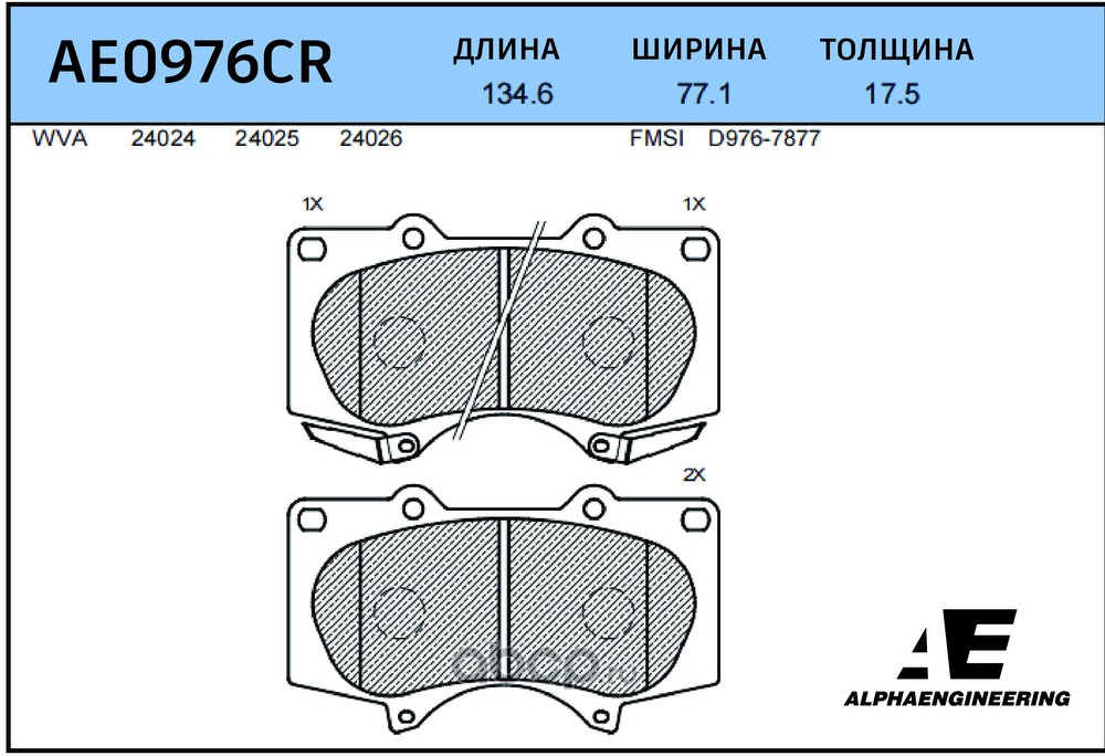 | ALPHA ENGINEERING | AE1258CR | Колодки тормозные CERAMIC | ||