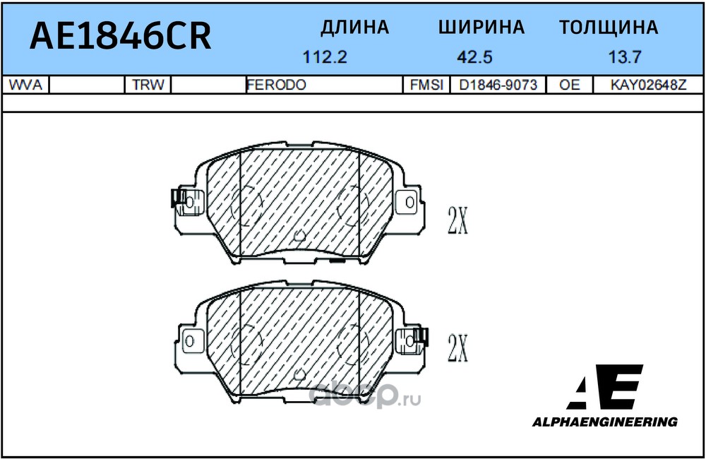 | ALPHA ENGINEERING | AE1846CR | CERAMIC Колодки тормозные зад. | ||