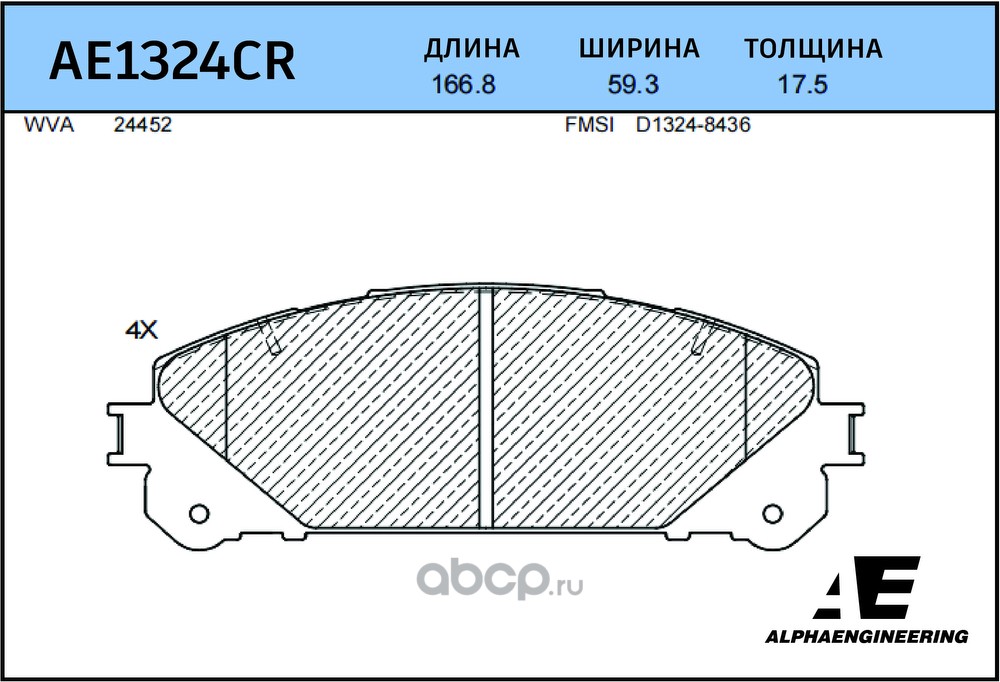 | ALPHA ENGINEERING | AE1324CR | CERAMIC Колодки ( С УСТАНОВОЧ. К-ТОМ И УСИКАМИ ) | ||