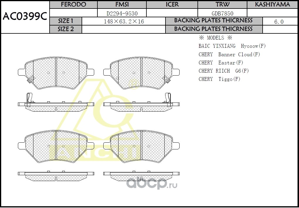| ANCHI | AC0399C | Тормозные колодки дисковые | ||