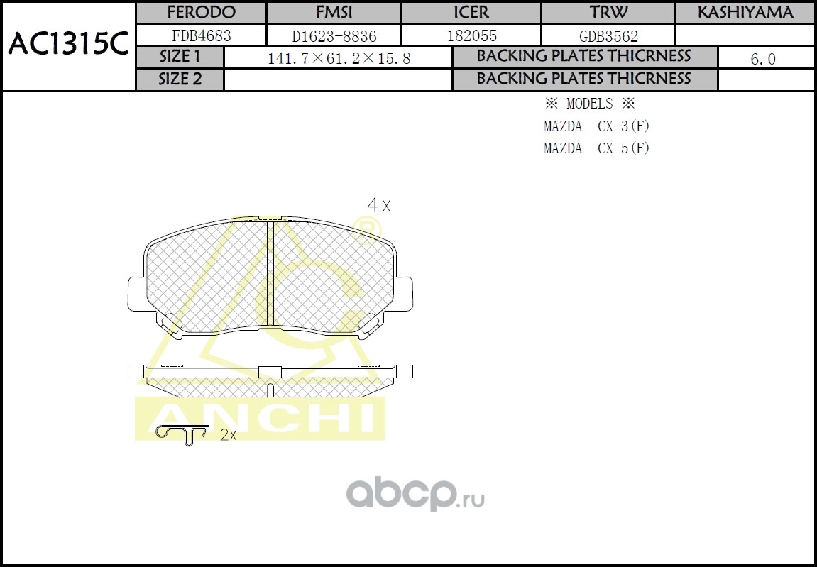 | ANCHI | AC1315C | Тормозные колодки дисковые |