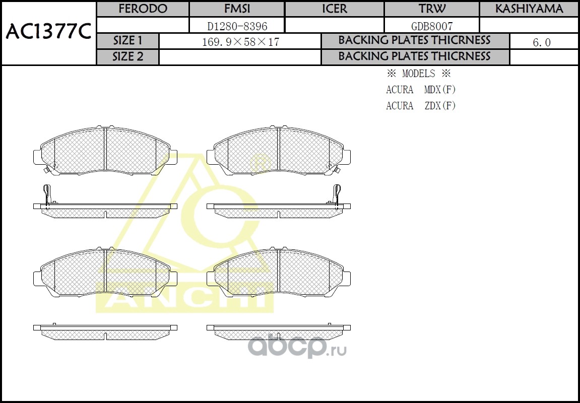 | ANCHI | AC1377C | Тормозные колодки дисковые | ||