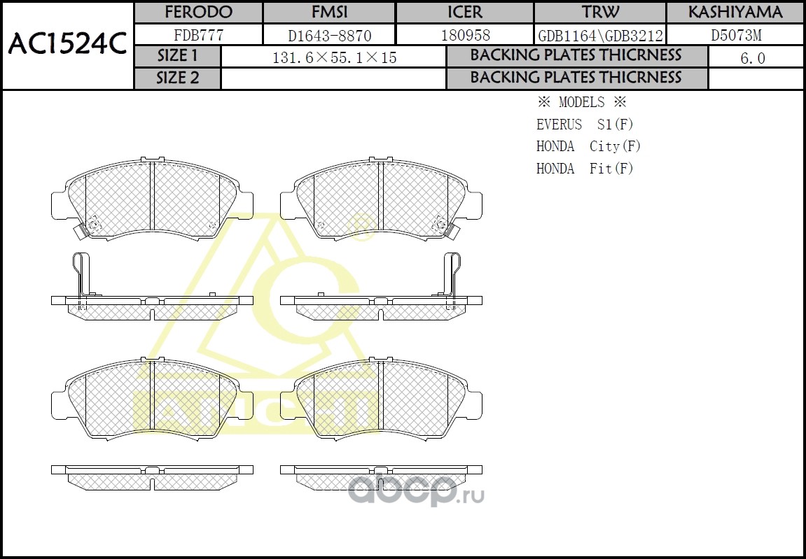 | ANCHI | AC1524C | Тормозные колодки дисковые | ||