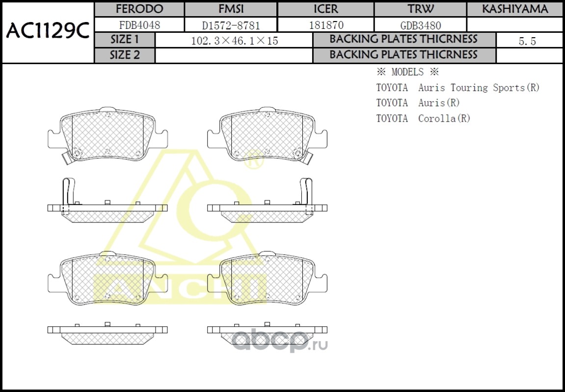 | ANCHI | AC1518C | Тормозные колодки дисковые | ||