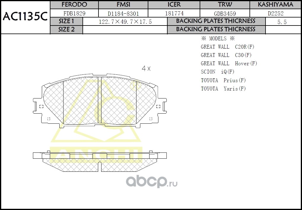 | ANCHI | AC1129C | Тормозные колодки дисковые | ||
