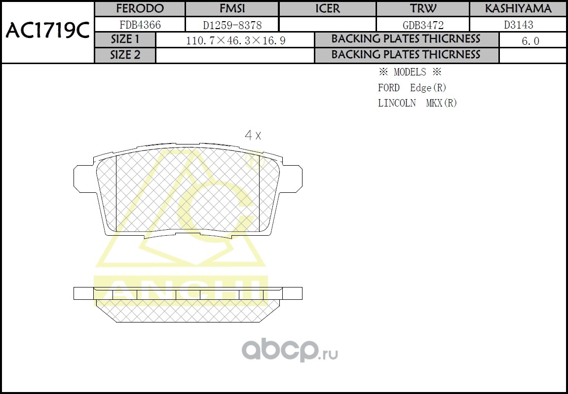 | ANCHI | AC1719C | Тормозные колодки дисковые | ||