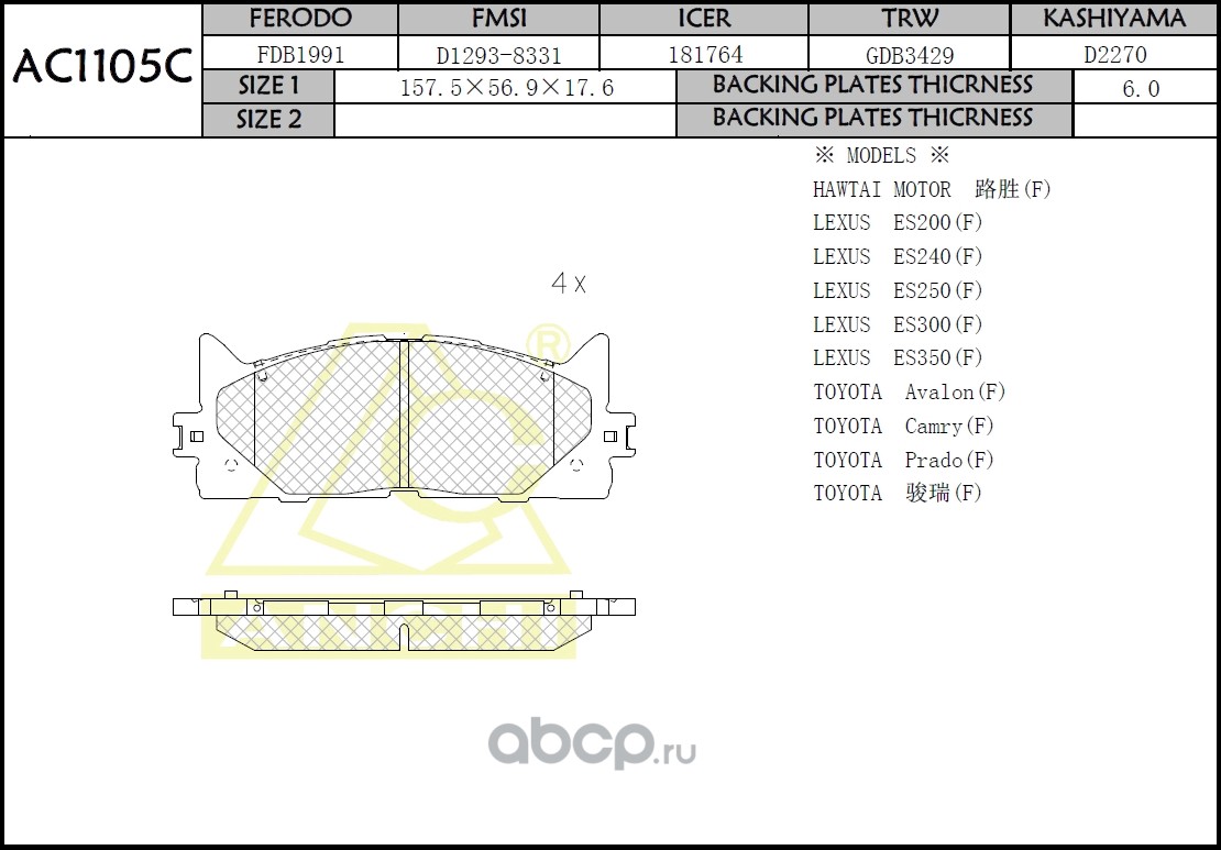 | ANCHI | AC1105C | Тормозные колодки дисковые | ||