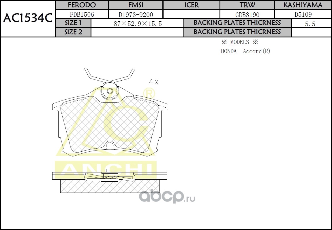 | ANCHI | AC1534C | Тормозные колодки дисковые | ||