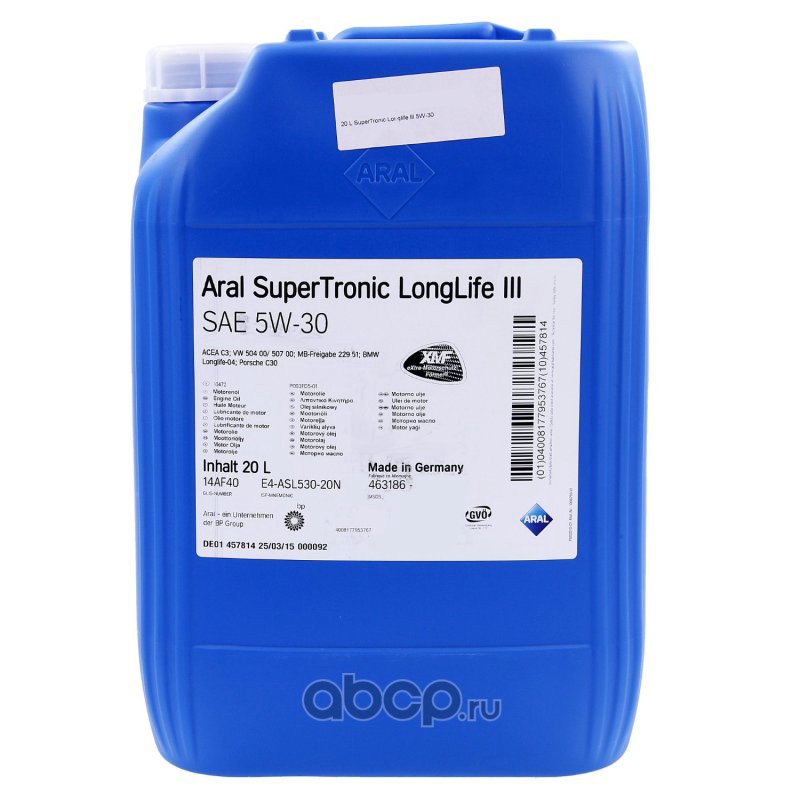 | ARAL | 10472 | Масло моторное синтетика ARAL Super Tronic Longlife-III 5W-30 20 л. | ||
