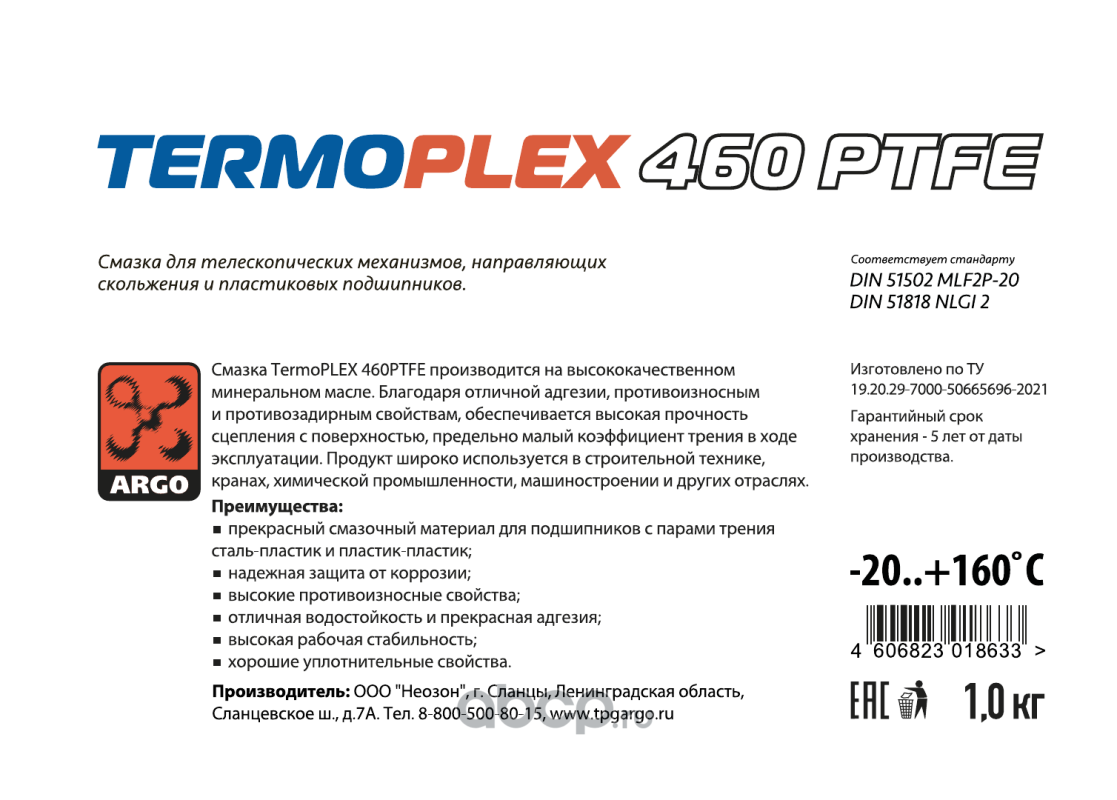 | ARGO | Н00220001 | Смазка ARGO TermoPlex 460 PTFE 1кг. | ||