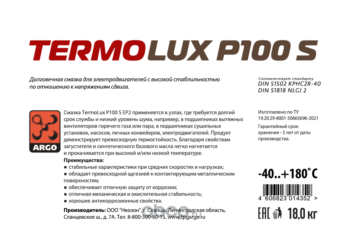 | ARGO | Н01620180 | Смазка ARGO TermoLux P 100 S 18кг. |