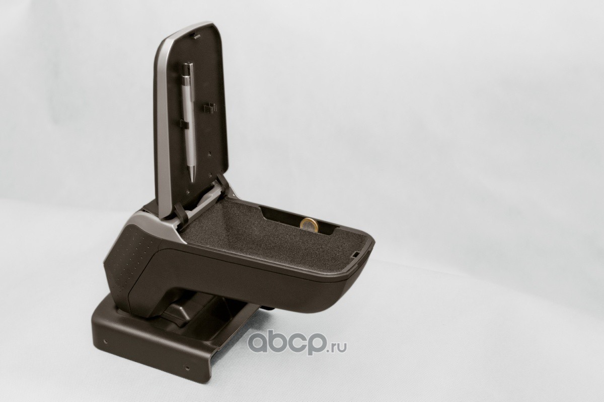 Цветовая гамма верхней сдвижной крышки, обтянутой высококачественным кожзаменителем, двух видов - черная и серая. Корпус - черный. Подлокотник имеет функцию откидывания вверх, микрорегулировку наклона (внизу находится специальный ролик), сдвижную крышку для нескольких видов положения и регулировки под конкретного водителя. Внутри поверхность флокирована - имеет бархатное покрытие.