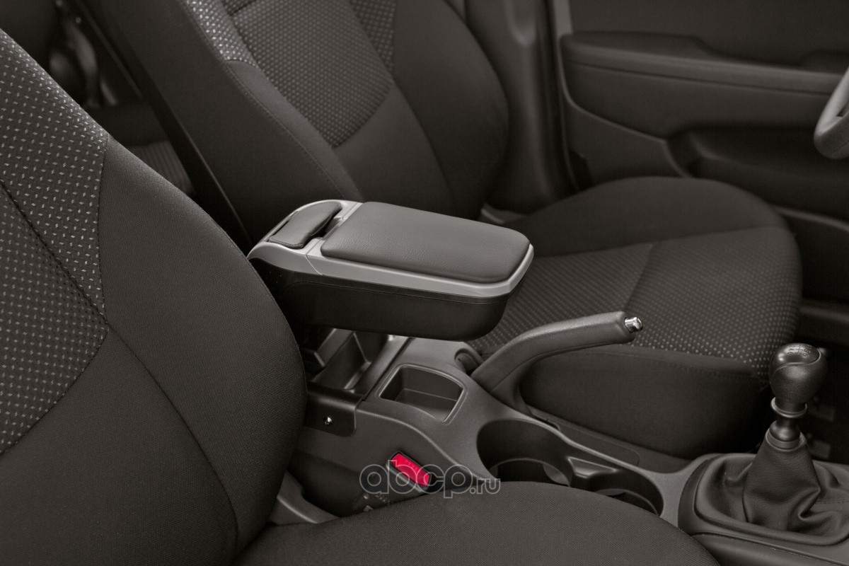 Цветовая гамма верхней сдвижной крышки, обтянутой высококачественным кожзаменителем, двух видов - черная и серая. Корпус - черный. Подлокотник имеет функцию откидывания вверх, микрорегулировку наклона (внизу находится специальный ролик), сдвижную крышку для нескольких видов положения и регулировки под конкретного водителя. Внутри поверхность флокирована - имеет бархатное покрытие.