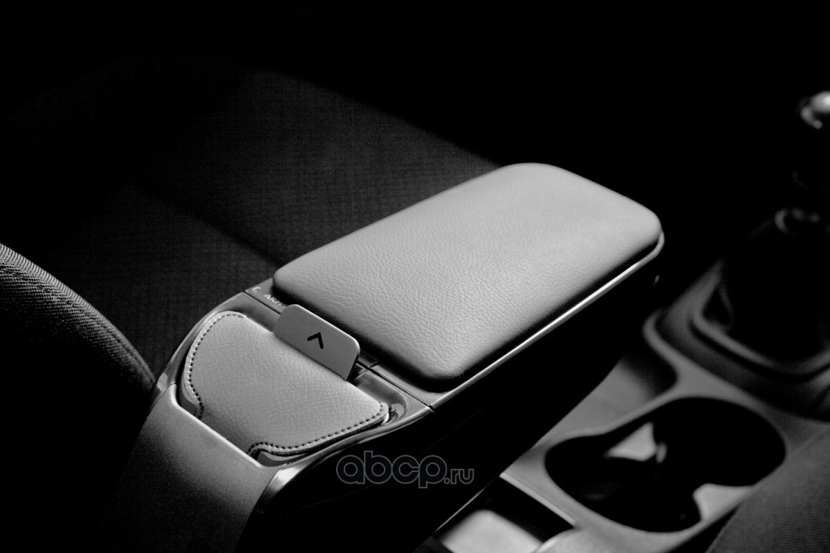 Цветовая гамма верхней сдвижной крышки, обтянутой высококачественным кожзаменителем, двух видов - черная и серая. Корпус - черный. Подлокотник имеет функцию откидывания вверх, микрорегулировку наклона (внизу находится специальный ролик), сдвижную крышку для нескольких видов положения и регулировки под конкретного водителя. Внутри поверхность флокирована - имеет бархатное покрытие.