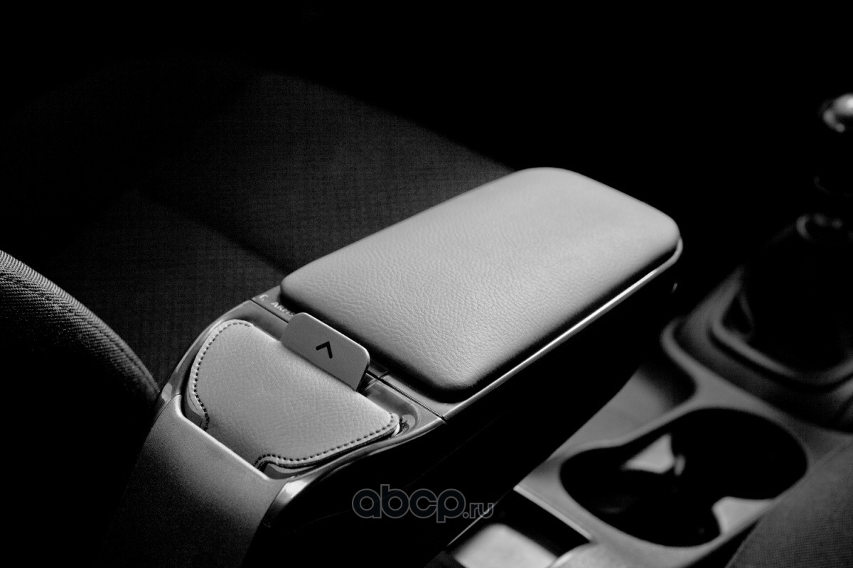Цветовая гамма верхней сдвижной крышки, обтянутой высококачественным кожзаменителем, двух видов - черная и серая. Корпус - черный. Подлокотник имеет функцию откидывания вверх, микрорегулировку наклона (внизу находится специальный ролик), сдвижную крышку для нескольких видов положения и регулировки под конкретного водителя. Внутри поверхность флокирована - имеет бархатное покрытие.