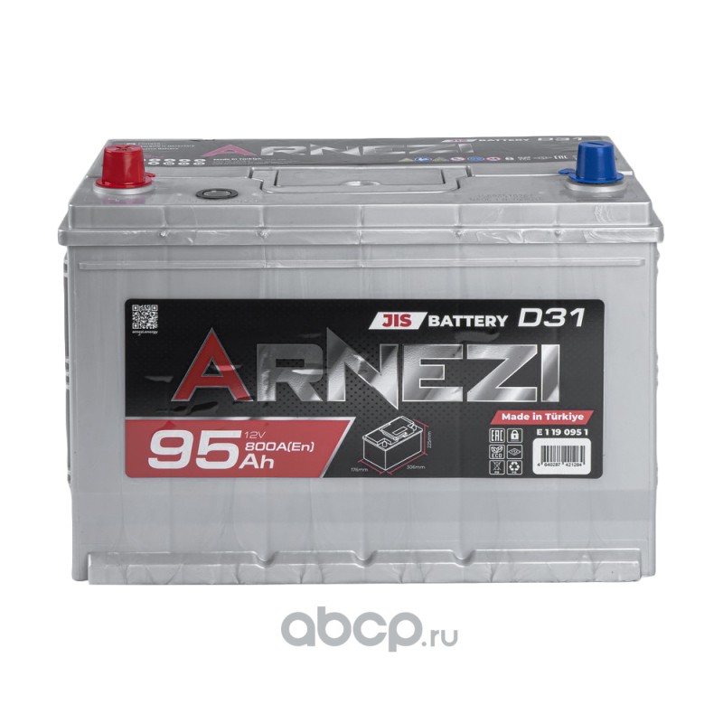 ARNEZI E1190951 Аккумулятор ARNEZI JIS SMF 95 А/ч прямой L+ 306x176x225 N70 EN 800 А