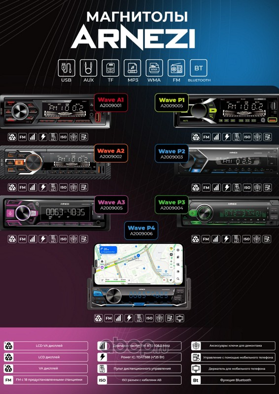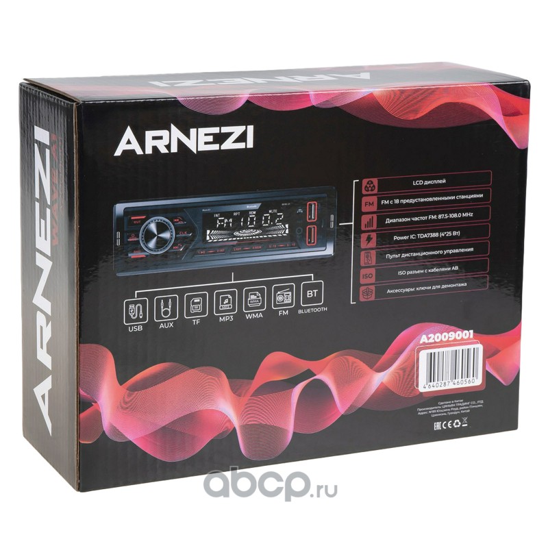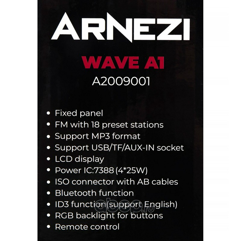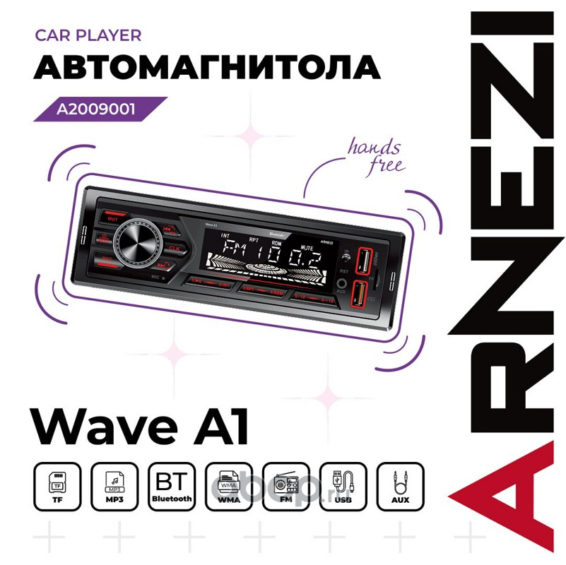 ARNEZI A2009001 Автомагнитола ARNEZI Wave A1 4х25Вт (Bluetooth, FM, AUX, USB, TF)