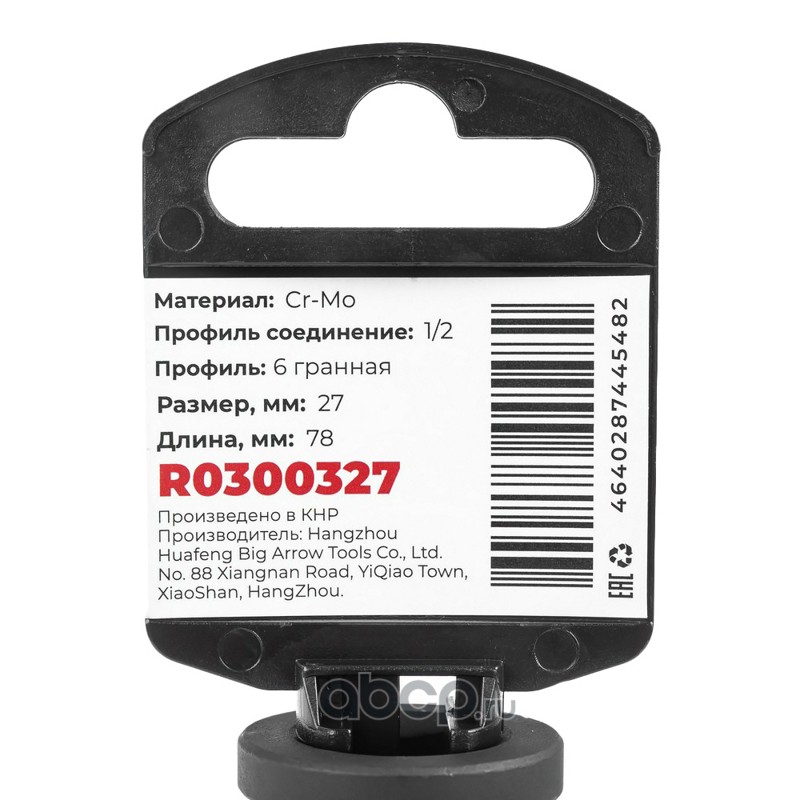 ARNEZI R0300327 Головка ударная 1/2""DR 6-гр. 27 мм Cr-Mo удлиненная, на холдере