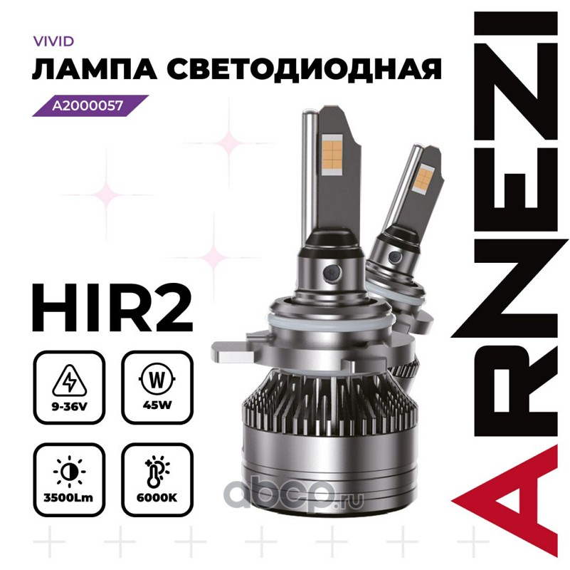 ARNEZI A2000057 Лампа светодиодная HIR2 Vivid 45W 12-24В 3500Lm LED 6000K IP68 (2 шт.)