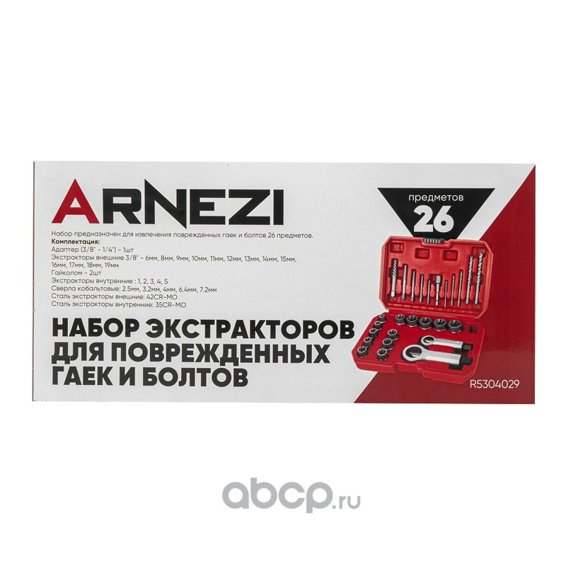ARNEZI R5304029 Набор экстракторов для поврежденных гаек и болтов, 26пр. Универсальный