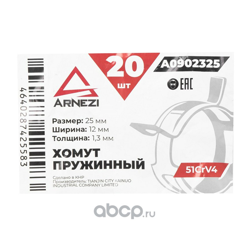 ARNEZI A0902325 Хомут пружинный 25/12-1.3 51CrV4 патрубков и шлангов