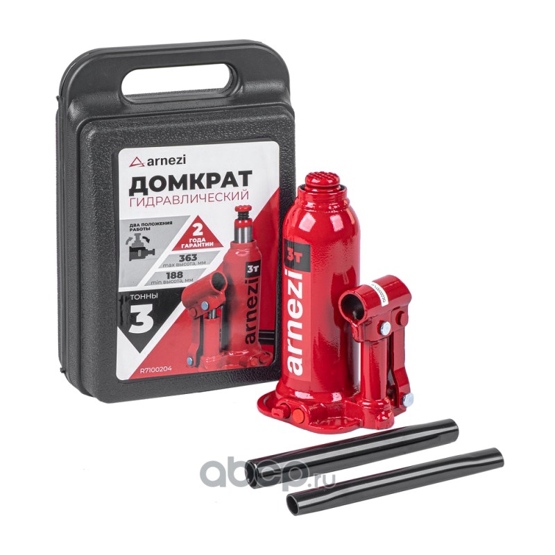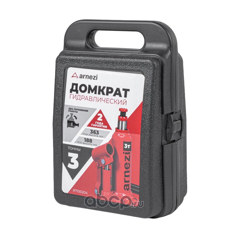 Домкрат гидравлический бутылочный 3т 188-363мм в кейсе