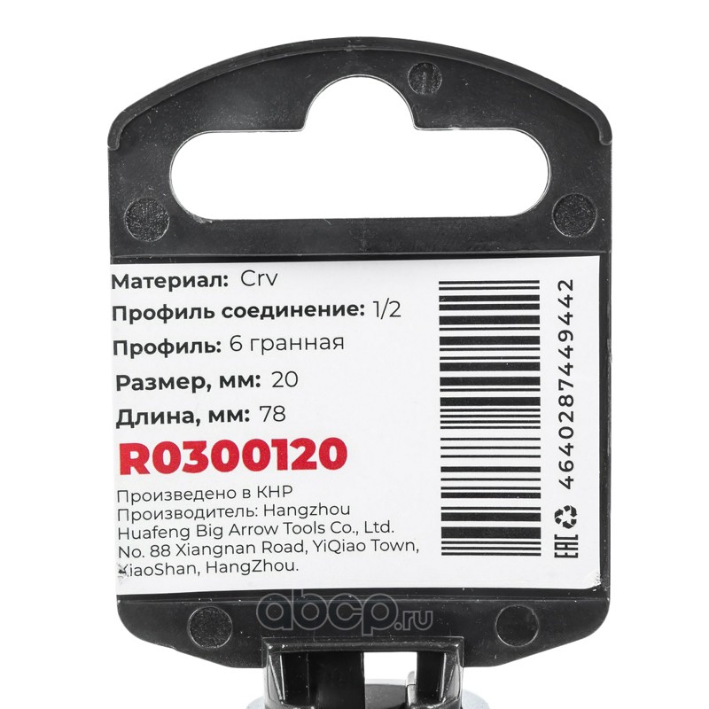 Головка 1/2"" 6-и гр. 20 мм L=78 мм удлиненная, на холдере