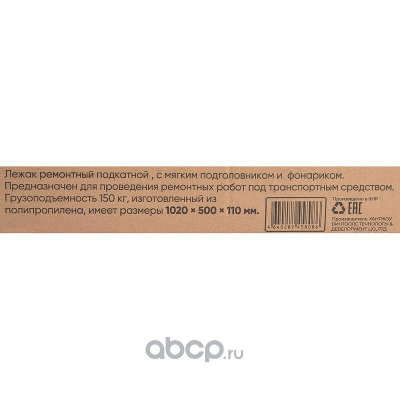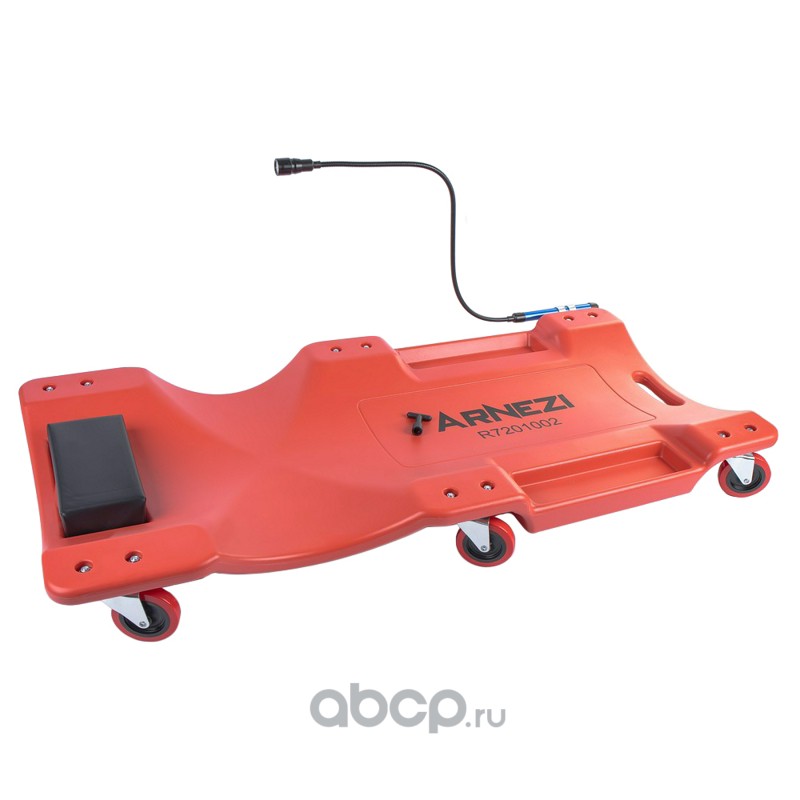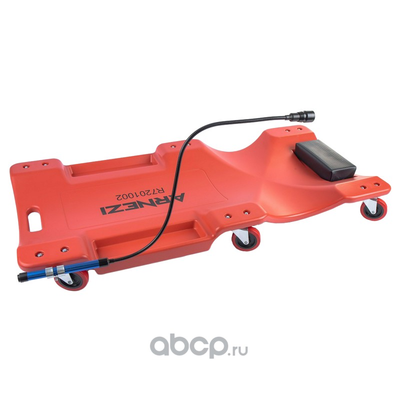Лежак ремонтный подкатной 6 колес 1020x500x110 мм пластиковый с мягким подголовником и с фонарик