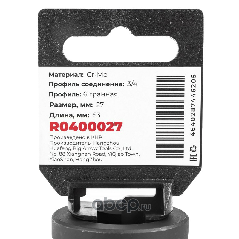 Головка ударная 3/4""DR 6-гр. 27 мм Cr-Mo, на холдере