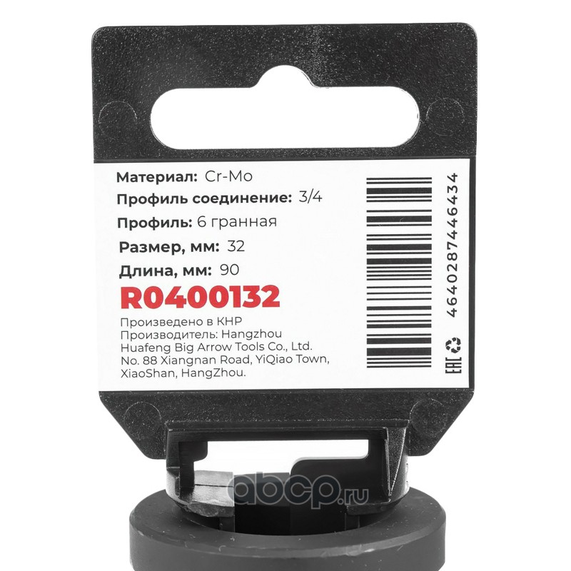 ARNEZI R0400132 Головка ударная 3/4""DR 6-гр. 32 мм Cr-Mo удлиненная, на холдере