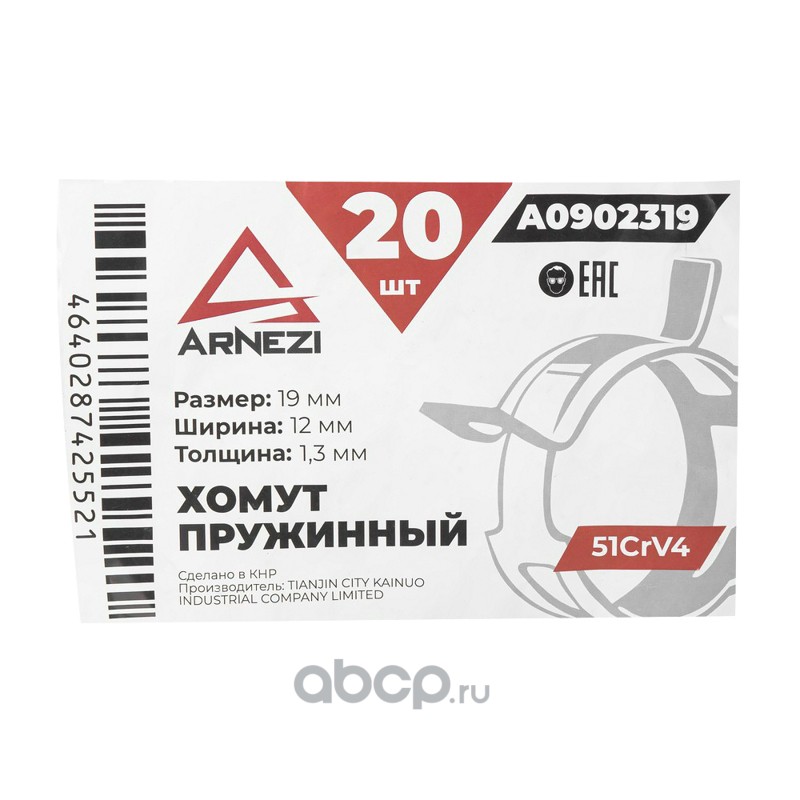 ARNEZI A0902319 Хомут пружинный 19/12-1.3 51CrV4 патрубков и шлангов