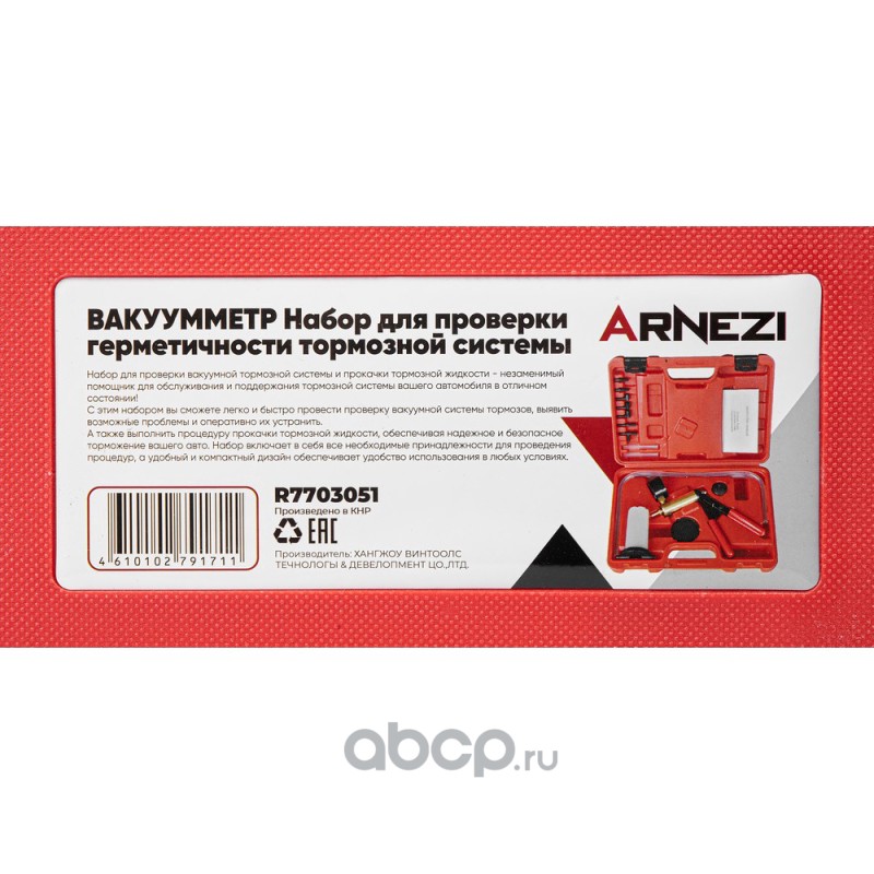 ARNEZI R7703051 Набор для проверки герметичности тормозной системы (вакуумметр)