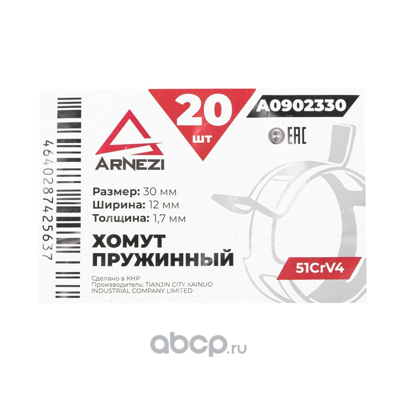 ARNEZI A0902330 Хомут пружинный 30/12-1.7 51CrV4 патрубков и шлангов A0902330