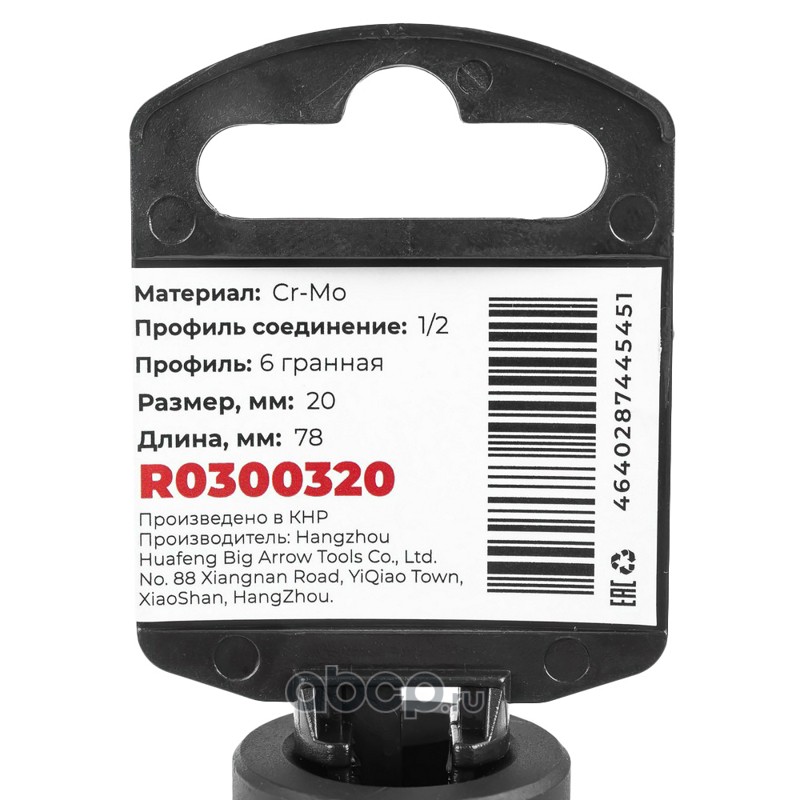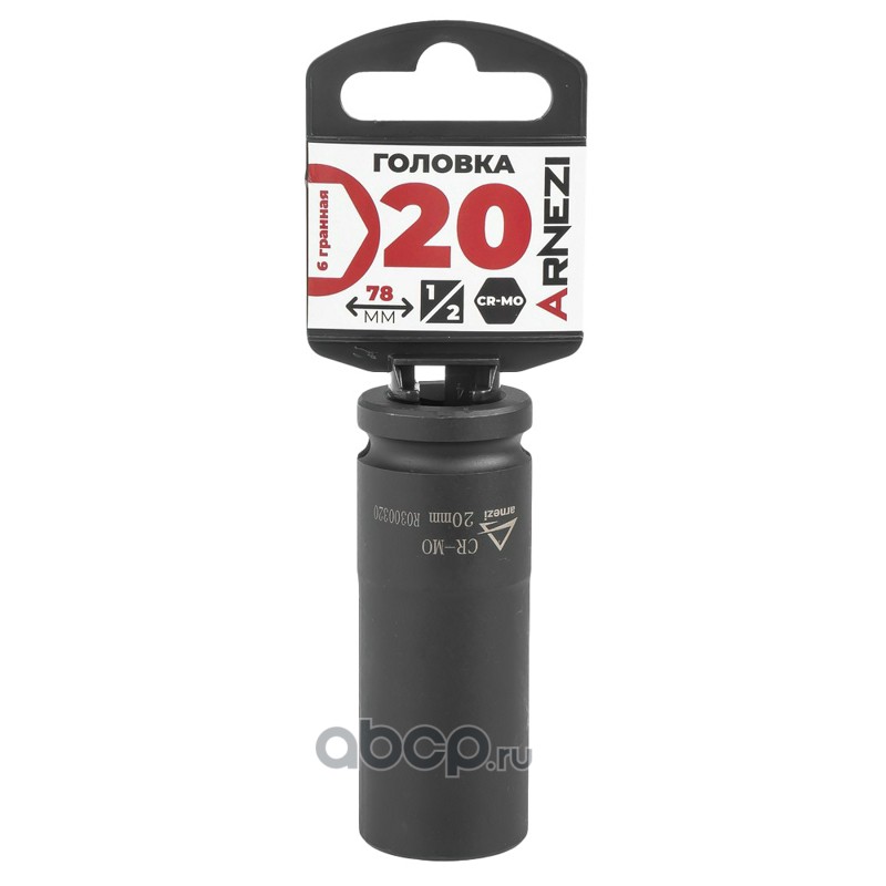 ARNEZI R0300320 Головка ударная 1/2""DR 6-гр. 20 мм Cr-Mo удлиненная, на холдере