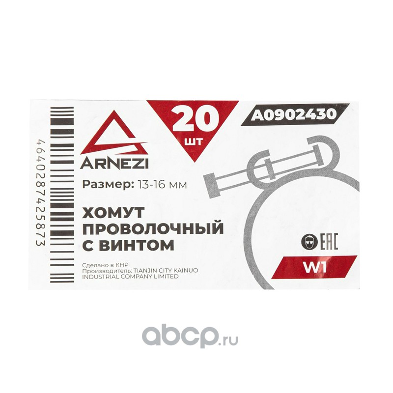 ARNEZI A0902430 Хомут проволочный с винтом d=13-16 ф1.5 W1 A0902430